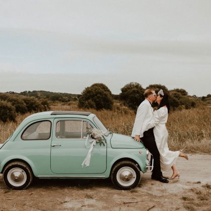 Stéphanie et Sébastien c’est une rencontre incroyable lors d’un emménagement. Leur logo de mariage SOL rappelle leurs prénoms, leurs noms mais aussi leur personnalités solaires. L’autodérision et l’humour qui les caractérisent les rendent particulièrement attachants. Résultat : un mariage joyeux ! La pluie s’invite un 30 août ? Rien de grave, ils profitent de leur journée ponctuée de rires et d’émotions. Je me souviendrai longtemps de leur cérémonie civile célébrée dans un fou rire général ! Le thème italien du grand buffet se retrouve aussi dans les grands et les petits détails comme cette Fiat 500 ou encore les cadeaux invités.